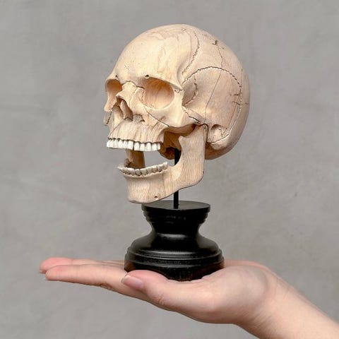 Kaiverrus, Intricately Carved Mother of Pearl Shell - Human Skull Motif - 17 cm