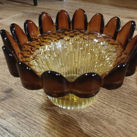 Hyväkuntoinen ja virheetön Humppilan lasi kruunu malja, väri vihreä/kirkas. Korkeus 10,5 cm ja halkaisija 16 cm.