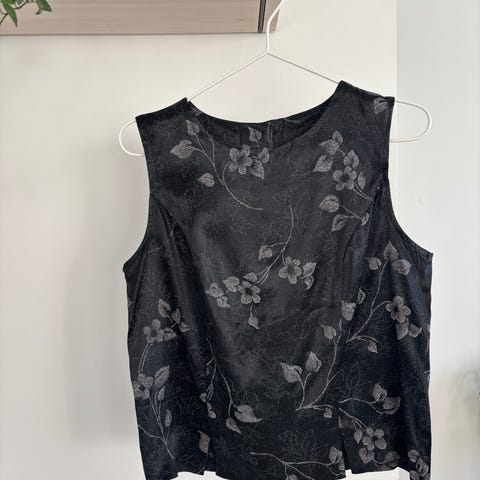 Mustavalkoinen pusero. Kokolapussa lukee m, mutta vastaa ehkä enemmän s kokoa. Olka-helma 43cm, vyötärö 37cm ja Kainalo-Kainalo 47cm.