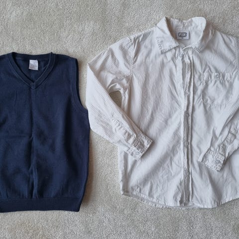 Uudenveroinen, kerran käytetty, tummansininen slipoveri, hieno lumiukko kuva edessä, 7-vuotiaan koko, 100% puuvillaa.