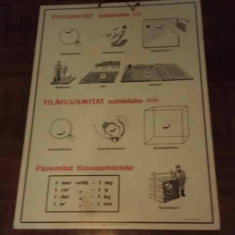 Vanha Koulutaulu, kaksipuolinen, ohuempaa pahvia, tyydyttävässä kunnossa, hiukan nuhraantunut, tahraa.