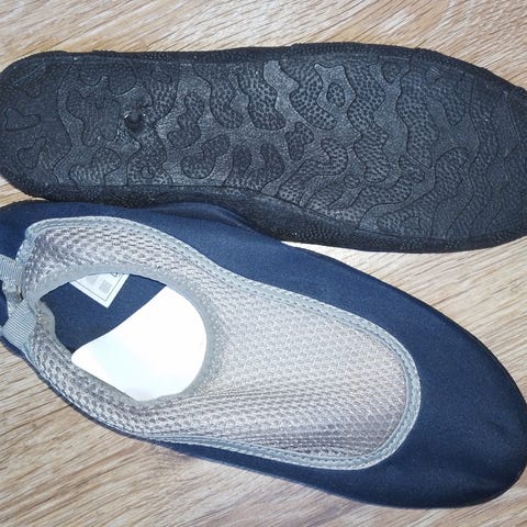 Miesten rantatossut. Joustava päällysmateriaali. Kuvioitu pohja vaimentaa liukastelua rantakivillä ja estää lasinsirujen haavat. Uudet, käyttämättömät. Parempi varoa kuin menettää arvokkaita lomapäiviä! Koko 42-43. Postikulu 8,90. Katso myös muut ilmoitukseni!