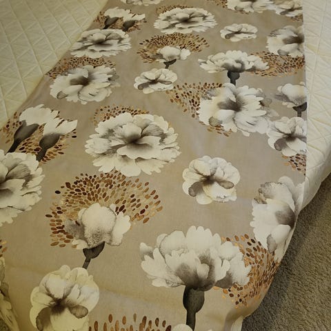 Myydään Pentikin tummanharmaa Pioni pöytäliina. 130cm x 234 cm.