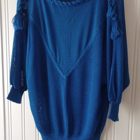 Poncho neule vyöllä s/m kokoa. Materiaali 50% puuvilla, 33% viskoosi ja 17% polyamidi. Pituus 82cm ja vyötärö 59cm.