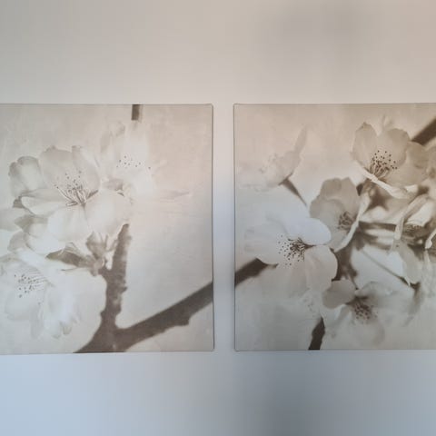 Hieno ja harvinaisen isokokoinen canvastaulu, koko 152 x 76 cm.