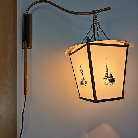 Pari naarmua lasikuvussa, ei näy käytössä. Vaaleanruskeaa lasia. Mukaan varapolttimot. Tarkempi putsaus jää ostajalle. EN POSTITA. Nouto Limingan kylän pinnasta.
