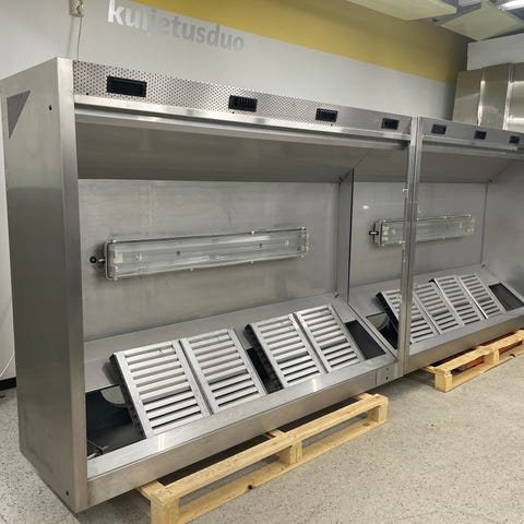 Käytetyt kalusteet myydään luovutushetken kunnossa ja varustein. Koneet ja laitteet on puhdistettu, tarkistettu sekä koekäytetty ja ne toimitetaan kunnossa olevina. Tuotteilla ei ole takuuta, eikä vaihto- tai palautusoikeutta.