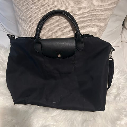 Longchamp kangaslaukku naisille mustana. Laukussa on vetoketjutasku ja sen materiaali on kangas. Laukku soveltuu arkikäyttöön ja tilavuutensa puolesta erilaisiin kuljetustarpeisiin.