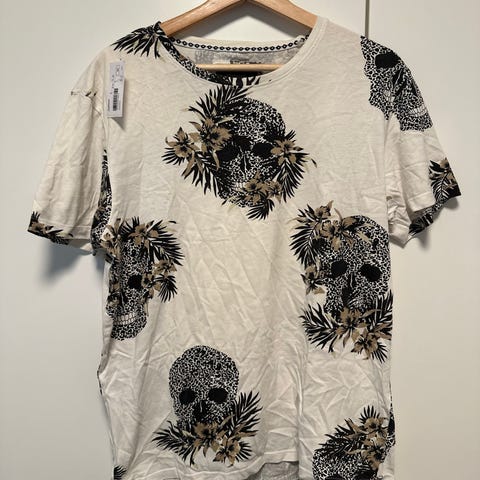 Ollut joskus t-paita mutta hihat saksittu pois. Hieno luuranko demoni hirvitys kuvana. Koko M
