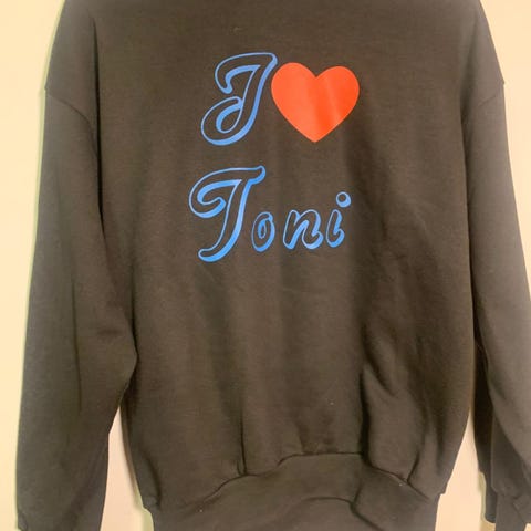 Unisex collegepaita, jossa on I Love Toni -teksti ja sydänkuvio. Paita on valmistettu mukavasta materiaalista ja sopii monenlaiseen käyttöön.