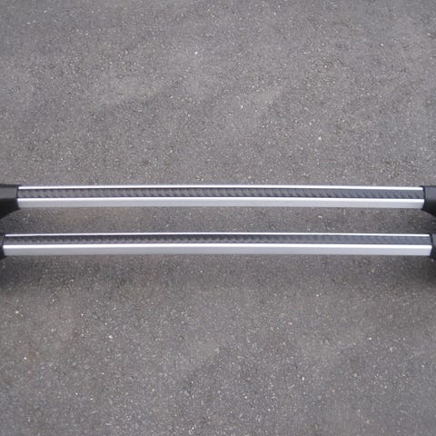 Volvon alkuperäinen kattoteline paketti toisen generaation (2011-2018) S60. Kiinnitysten väli mihin esimerkiksi suksiboksin saa kiinni on 89,5cm