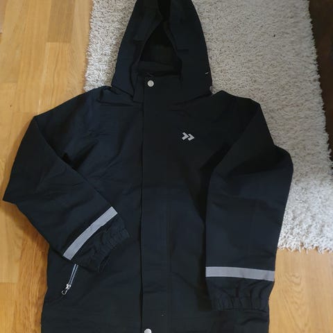 Musta hyväkuntoinen takki, koko 150, hihansuissa tarrat