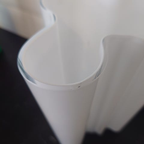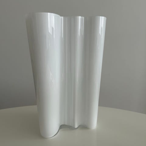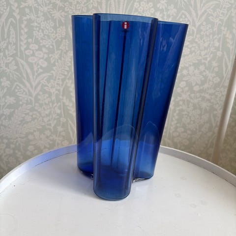 Iittala Aalto maljakko kirkasta lasia. Maljakon muoto on aaltoileva ja se on valmistettu lasista. Sopii kukkien tai muiden koristeiden esillepanoon. Todella kaunis