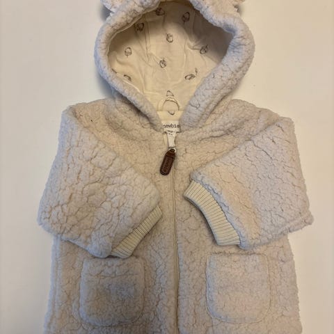 Newbie lämmin teddyhaalari koko 62. Uutena käyttöönotettu, ollut tämän syksyn käytössä, mutta jäänyt pieneksi. Hihansuut ja lahkeet saa tumpuiksi tai auki, jolloin käyttöikä hieman pitenee. Siisti käytetty kunto.
