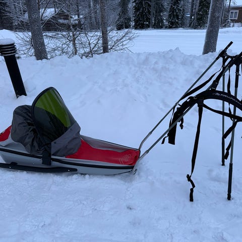 Vuokrattavana. Yhden lapsen kuljettamiseen sopiva hiihtoahkio
