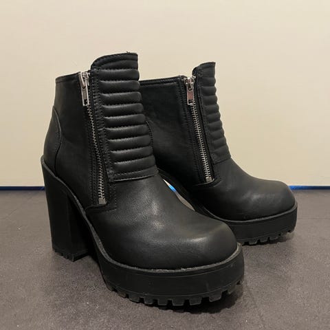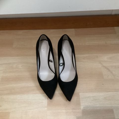 H&M korkokengät, koko 37. Mustat kengät, joissa koristeena kullanväriset niitit. Korkea 9 cm tolppakorko. Materiaali keinonahkaa.