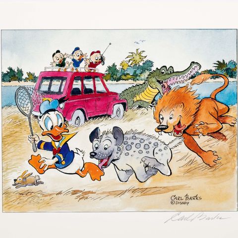 Graham Clarke Unkle Sid & the Limpet Racers taidevedos, numeroitu 28/300. Kehystetty ja signeerattu taiteilijan toimesta. Kehyksen koko 91 x 79 cm.