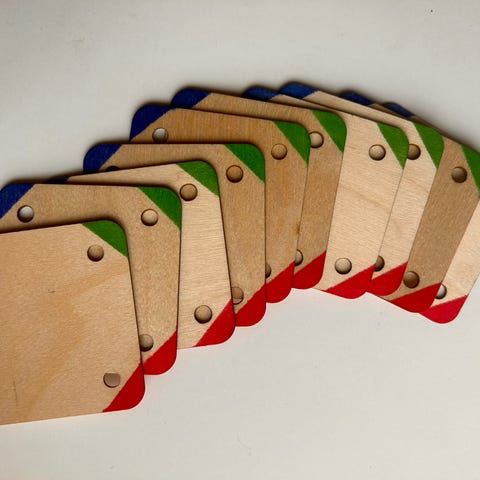 Kulmat maalattu lankojen kääntelyä helpottamaan.