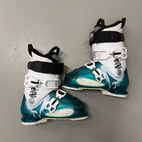 Atomicin laskettelumonot koossa noin 33-34. Ulkokuoressa kuvissa näkyvää käytön jälkeä, mutta muuten hyvässä, toimivassa kunnossa.