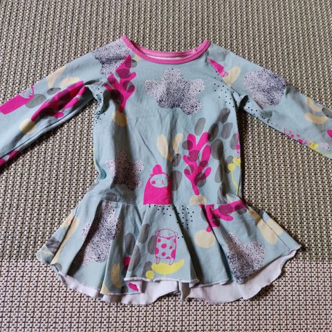 Blaa trikoo mekko. Ollu pitkät resorit mutta ommeltu normaalin resorin mittaan.