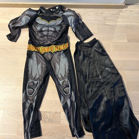 Batman naamiaisasu unisex, sisältää paidan, housut ja käsineet. Sopii naamiais- ja pukukäyttöön.Koko 128