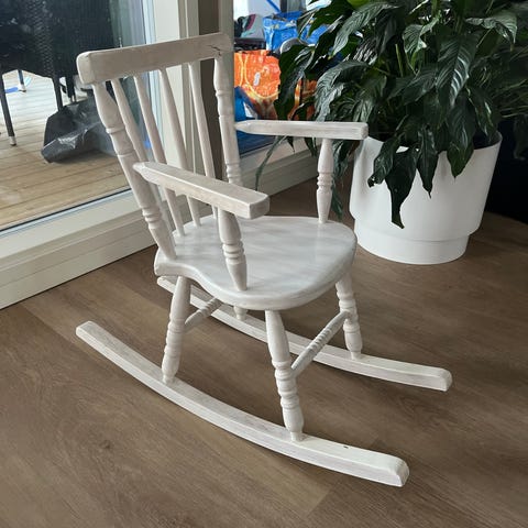 Vaaleanpunainen lasten keinutuoli. Normaalia käytönjälkeä, yleiskunto kuitenkin mielestäni hyvä. Tehtaan maalissa, ei ole itse tuunailtu.