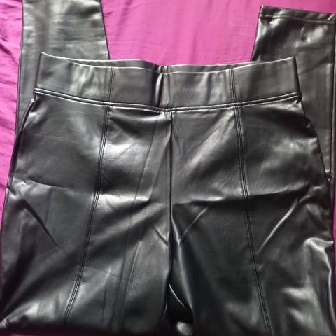 Mustat leveälahkeiset housut, venyvä materiaali.