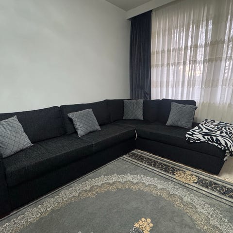 Myydään harmaa erittäin siisti ja ehjä kulmasohva. Vuoden vanha. 285cm×228×90cm