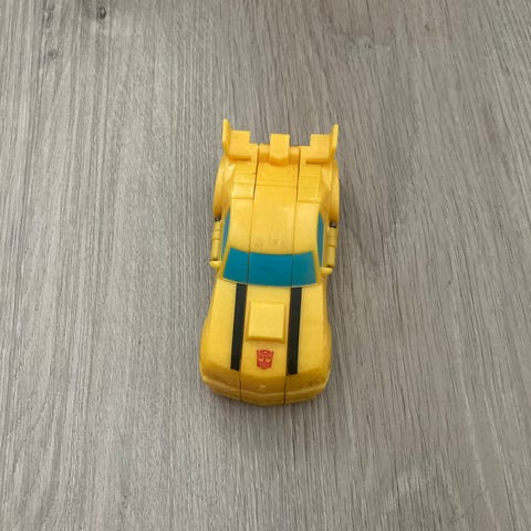 Transformers peliauto, jossa on punainen ja harmaa väri. Auto on muovista valmistettu ja sisältää nostolavan ja avattavat osat. Sopii leikkeihin ja keräilyyn.