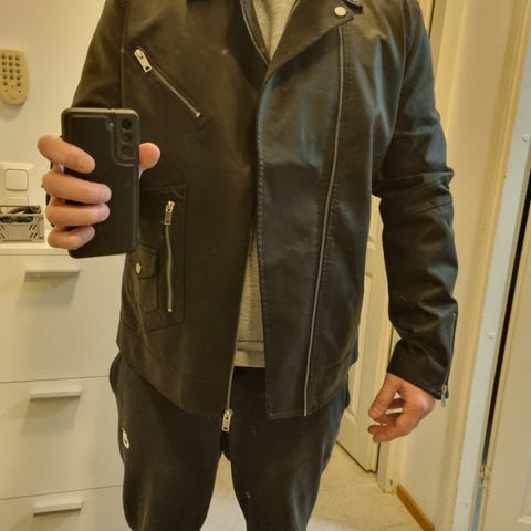 Myydään hyvässä, kunnossa oleva miesten nahka takki.