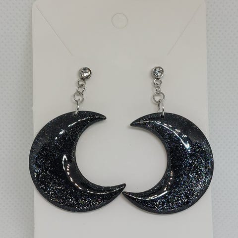 musta kimallus glitter moon earrings