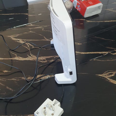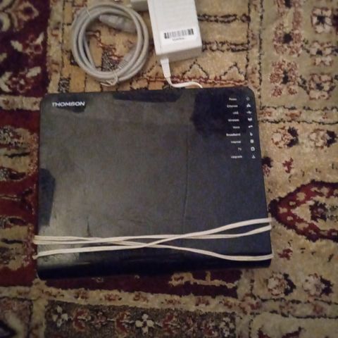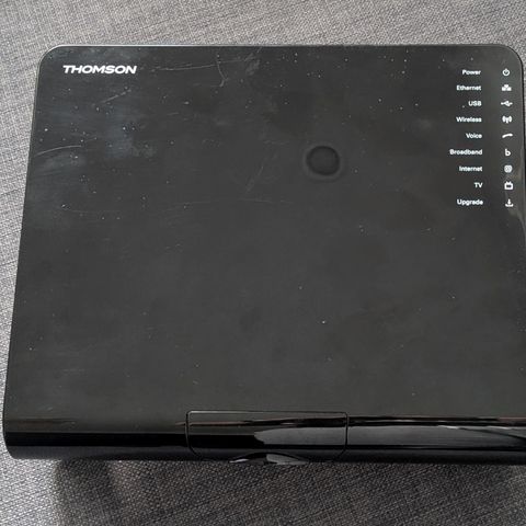 Thomson Reititin, musta väri, useita Ethernet-portteja, USB-liitäntä, langaton yhteys. Laite soveltuu verkkoyhteyksien hallintaan ja jakamiseen kotikäytössä tai pienissä toimistoissa.