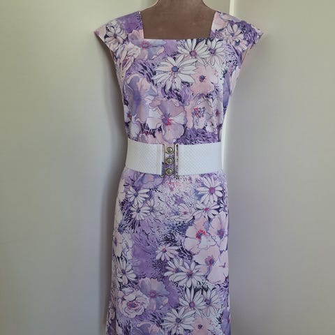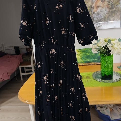 Vintage lyhyt kukkamekko. Materiaali ja koko tiedot puuttuvat. Noin s kokoa ja puuvilla tuntu. Olka-helma 82cm ja Kainalo-Kainalo 40cm.