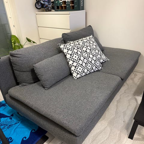 Gunnared beige kangas. Erittäin hyvässä kunnossa, ei eläintalous. Päälliset pesty muutama viikko sitten.