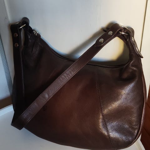 Ruskea nahkainen olkalaukku