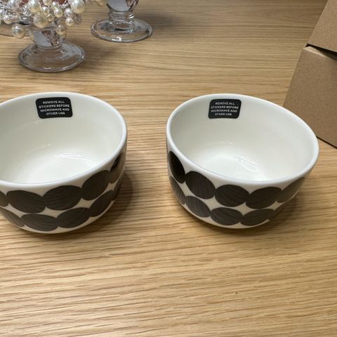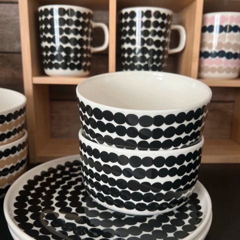 Uudet Marimekon siirtolapuutarhakulhot räsymattokuvioin.