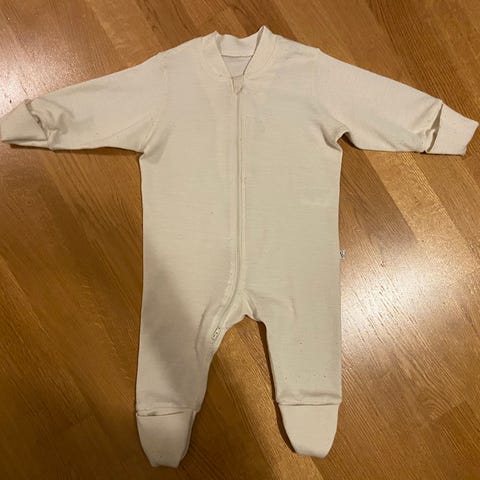 Myydään North Outdoor -merkkinen luonnonvalkoinen villahaalari kokoa 68 - 74 cm. 80 % merinovillaa, 20 % polyesteriä. Kaksi vetoketjua helpottaa esim vaipan vaihtoa. Kätevät käännettävät "lapaset" "sukat" hihojen ja lahkeiden päissä.