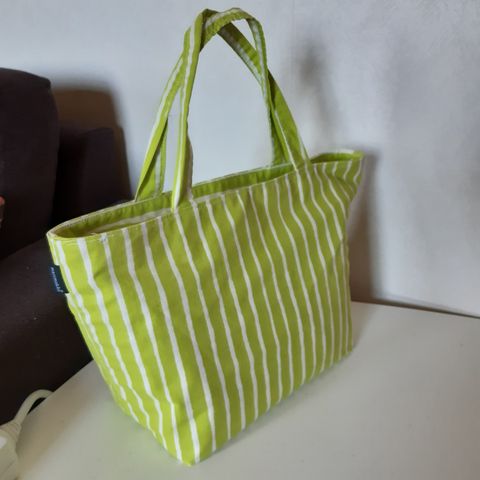Marimekon vihreä kangasolkalaukku. Myynnissä 15.1. asti.