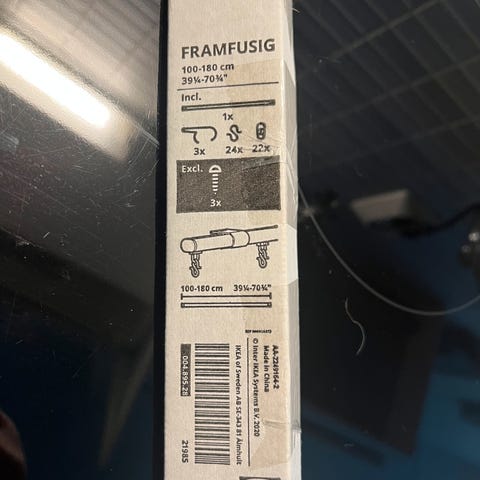 Verhokisko kattoon tai seinään, 250 cm + 200 cm, tästä yhteensä 450 cm pitkä, pituutta voit säätää tarvittaessa leikkaamalla, kätevä liitos, jonka yli verho luistaa. Tilpehöörit mukana.