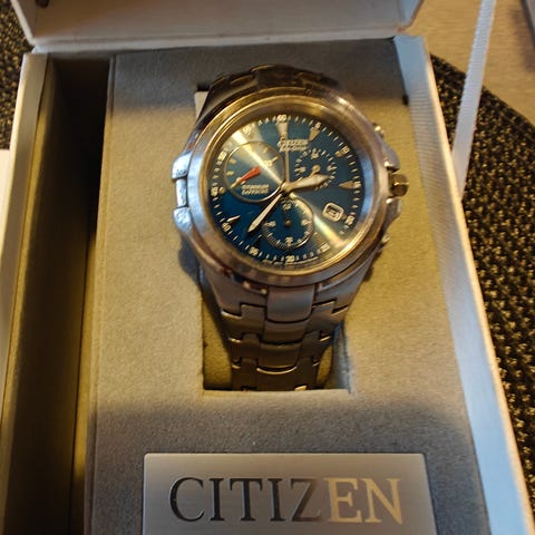 Toimii valolla, ei paristonvaihtoja. Kellon koneisto latautuu sekä auringonvalosta että sisävalosta. Käytetty noin 5 kertaa. Myydään vähäisen käytön vuoksi.