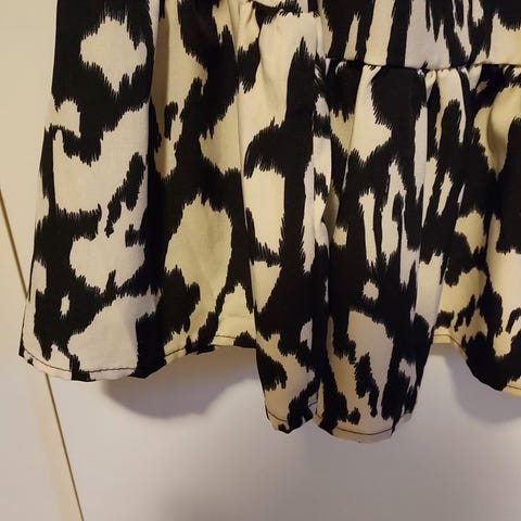 Puuvillainen kivasti laskeutuva mekko kukkakuvioilla. kainalo-kainao 70 cm, olka-helma < 130 cm. Myynnissä myös muualla.