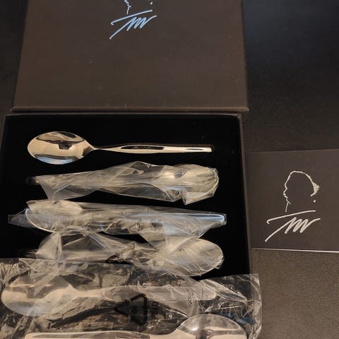Tapio Wirkkalan teräksisiä aterimia, myydään kappale hinnalla 8euroa kappale.Pikkulusikka 6euroa kappale.