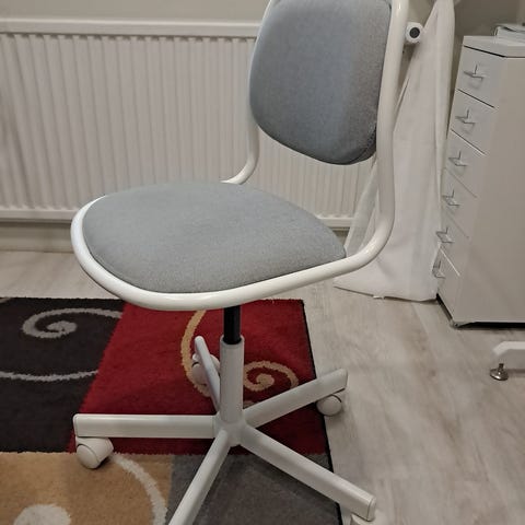 IKEA Vimund lasten työtuoli. Irrotettava ja pestävä päällikangas. Tuoli on ehjä, mutta istuinosassa on muutama tahra, jotka saattaa lähteä pesussa.