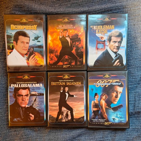 007 James Bond DVD-elokuvia. 4€/kpl. Nouto Lahdesta tai postitus.