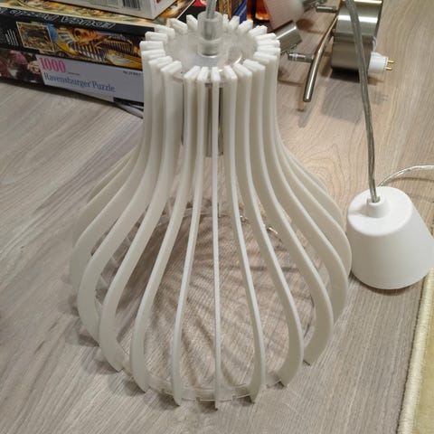 Toimiva lamppu. Kuvussa naarmuja mutta tuskin huomaa kun roikkuu katossa.
