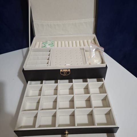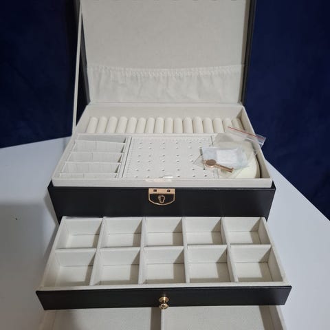 M-3-kerroksinen musta korurasia lukolla- 3 layers black jewellery box with a lock