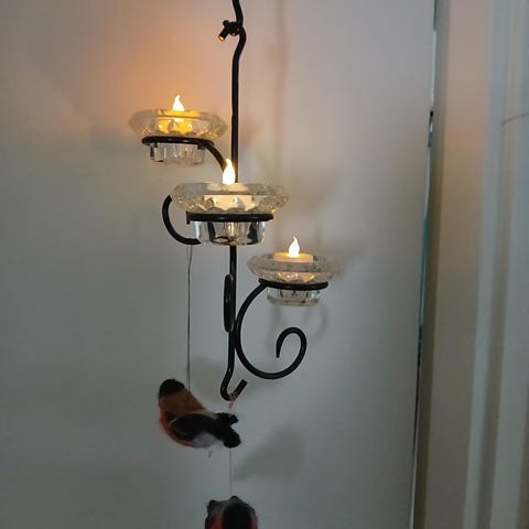 Riippuva kynttiläteline 3 lasi kynttiläalustaa ja 2 punatulkkua