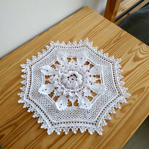 Käsin virkattu valkoinen liina