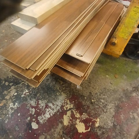 Kaksi pakettia eli 4m² uutta kuvan mukaista vaaleaa Egger M2 Just clic! laminaattia.