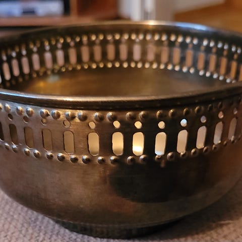 Ihana kullan värinen messinkinen säilytysastia. Sopii myös vaikka kukkaruukuksi.